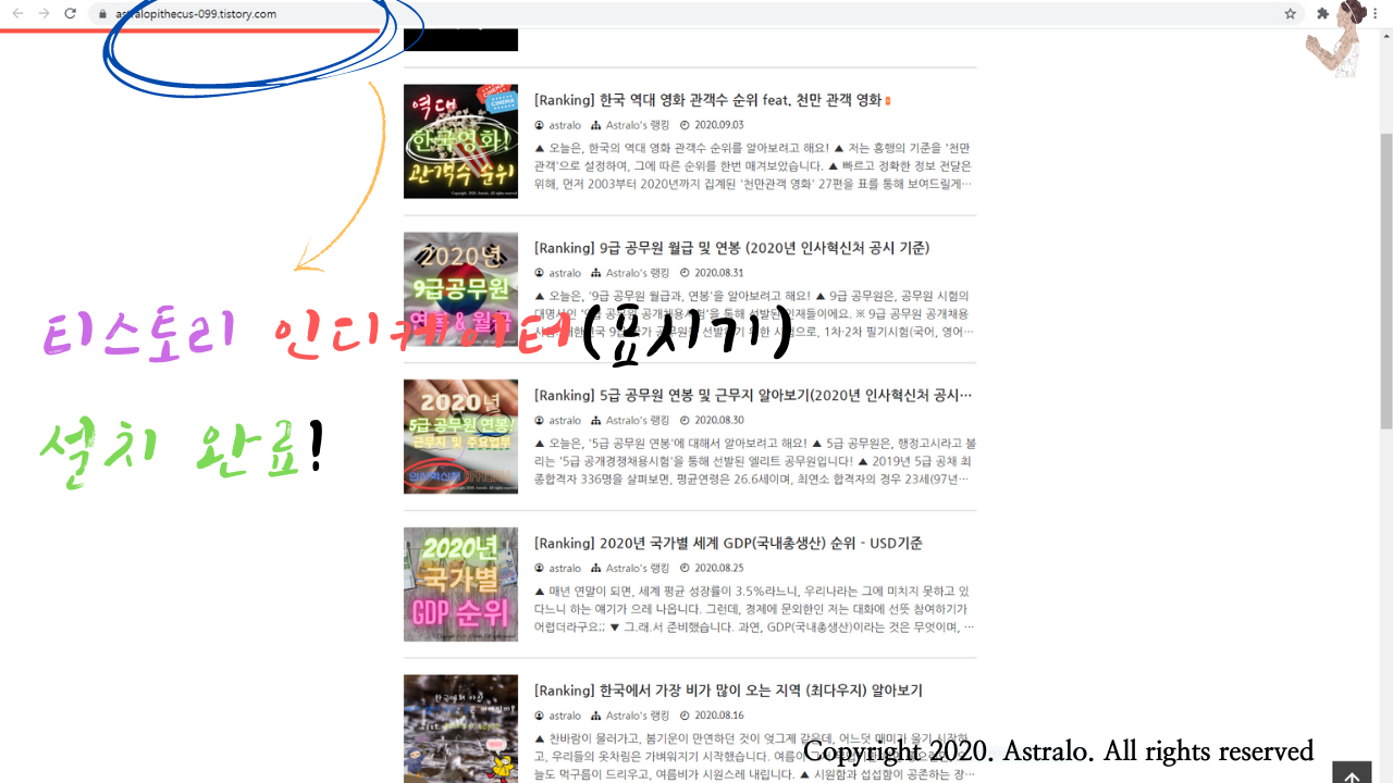 사담이 길었습니다! 오늘은, 티스토리 인디케이터(표시기)를 빠르게 설치하는 방법에 대해서 알아보았습니다.