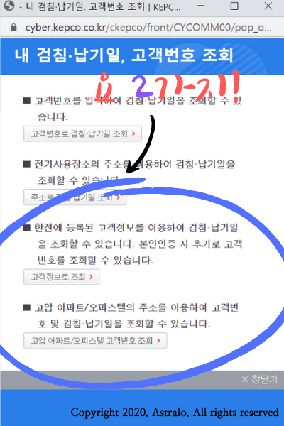 ※ if) 고지서가 없고, 고객번호를 모르신다면, 아래 내용을 참고하세요.