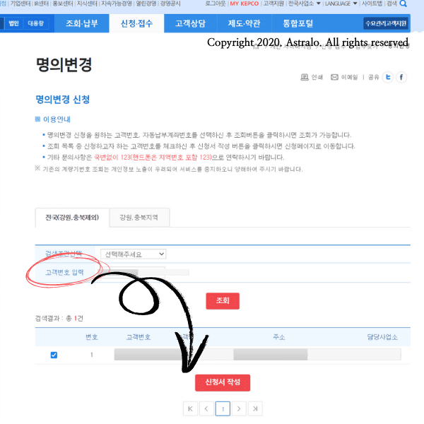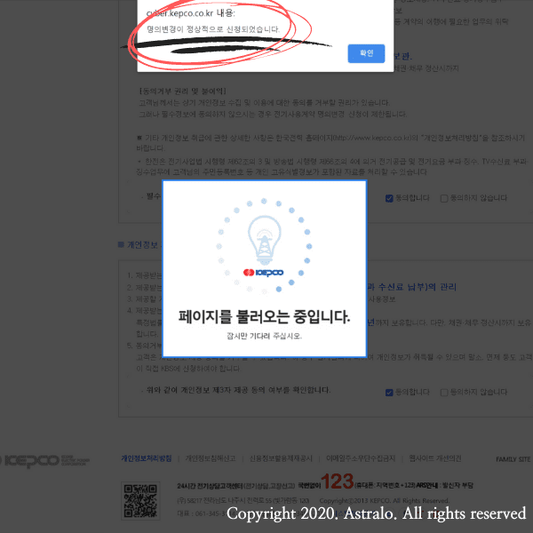 ▲ 축하드립니다! 전기요금 명의 변경이 완료되었습니다. 이제, 본인 명의로 바뀐 고지서를 기분 좋게 받아보시기를 바랍니다.