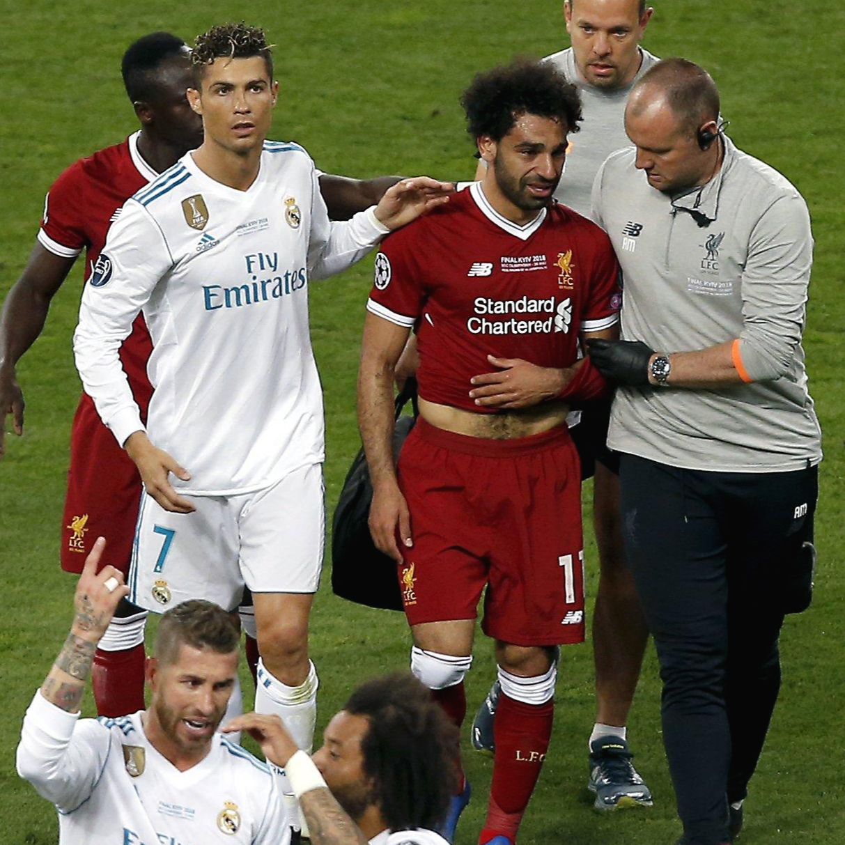 리버풀의 위르겐 클롭 감독은 대회 내내 10골 4어시스트라는 뛰어난 활약을 보여준 살라를 선발로 기용했다. 그러나 전반 28분경, 볼 경합 중 넘어지는 과정에서 '세르히오 라모스'와의 충돌로, 왼쪽 어깨가 흉부 방향으로 심각하게 꺾여, 어깨가 골절되는 부상을 당했다.