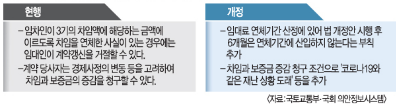 ∴ 이번 개정안의 주요 골자는, 코로나19 같은 대규모 감염병이 유행할 시, 임차인에게 임대료 감액청구권을 부여하고, 일방적으로 임대차 계약을 해지할 수 있는 기준인 임대료 연체 유예기간은 3개월에서 6개월로 연장한다는 것입니다.