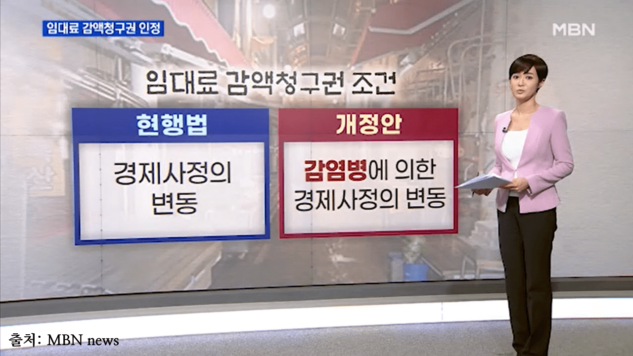 2020년 코로나 개정안은, 임차인에게 '임대료 감액청구권'을 부여하고, 임차인의 부담을 덜기 위해, '임대료 연체 유예기간'을 6개월로 연장시킨다는 내용을 골자로 하고 있습니다.