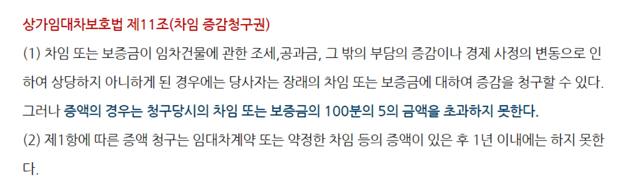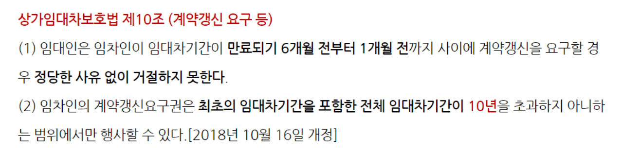 +++) 더하여, 2019년 이미 개정된 상가임대차 보호법에서 명시된 '10년짜리 계약갱신요구권'과 '임대료 인상률 5% 제한'이라는 키워드도 같이 다뤄봐야 합니다.