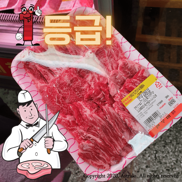 ▲ 앞서 보여드렸던 사진을 보시면, 고기 등급표에 가격도 표시되어 있는 것을 보실 수 있습니다.