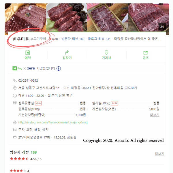 ★ 본 문서의 순서는 '식당정보 - 고기 맛 - 고기 가격 -총평' 순으로 구성되어 있습니다.