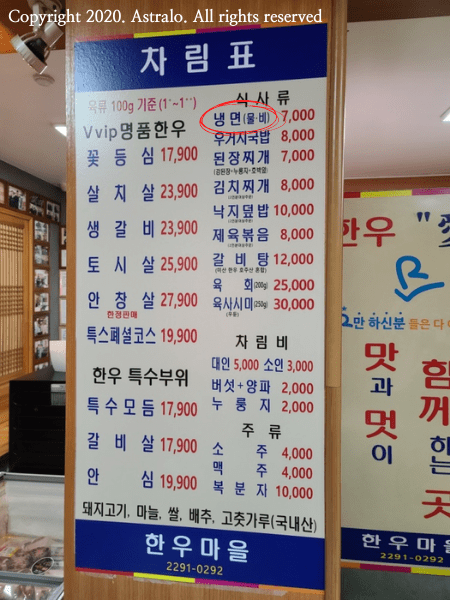 ▲ 여느 고깃집과 마찬가지로, 고기와 곁들여 먹을 수 있는 다양한 메뉴가 있었습니다. 개인적으로 소고기에는 냉면이 정말 맛나긴 합니다. 주문하실 때 참고하시라고 올려둡니다.