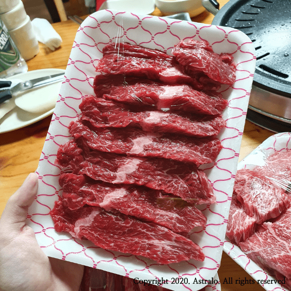 ▲ 가격을 떠나 고기맛부터 말씀드리자면, 고기의 품질은 1++등급인 만큼, 우수한 편입니다. 지방비율도 적은 편입니다.
