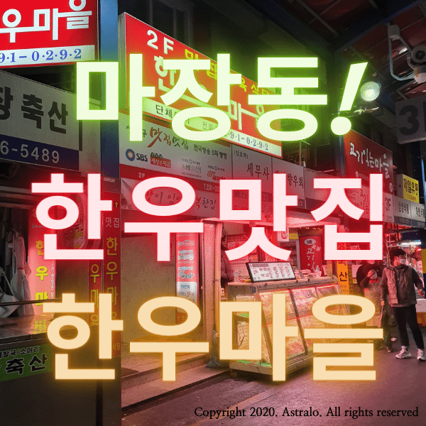 ∴ 그래서, 이번에는 Astralo가 한우 하면 딱 떠오르는 그 곳! 마장동에 다녀왔습니다. 마장동 축산시장은 무려 1961년에 처음 개장한 만큼, 그 역사도 깊습니다. 또, 예로부터 유명한 한우맛집도 많지요.