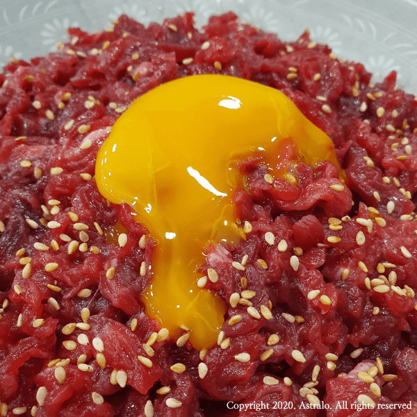 ▲ 육회는 주문한 지 1~2분 만에 바로 서빙이 됩니다. 고기에서 선홍빛이 도는 것이, 육회는 신선해 보입니다. 육회 위에 올라가 있는 싱싱한 달걀을 톡 터트려서 육회에 잘 버무려서 드셔 보세요. 쫄깃한 육회의 식감과 계란 노른자 특유의 담백함이 만드는 조화가 아주 일품입니다.