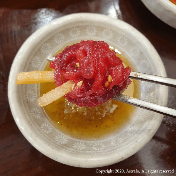 ☞ 개인적으로 저는 2명이서 방문했을 때는 이 육회 + 육회비빔밥 기본 구성이 가장 좋았다고 생각합니다. 신선한 육회의 쫄깃함도 느낄 수 있고, 육회비밤밥으로 배도 어느 정도 채울 수 있으니 맛도 좋고 가성비도 좋은 구성입니다. 특히, 연인과 함께 방문했을 경우 추천하고 싶은 구성입니다.