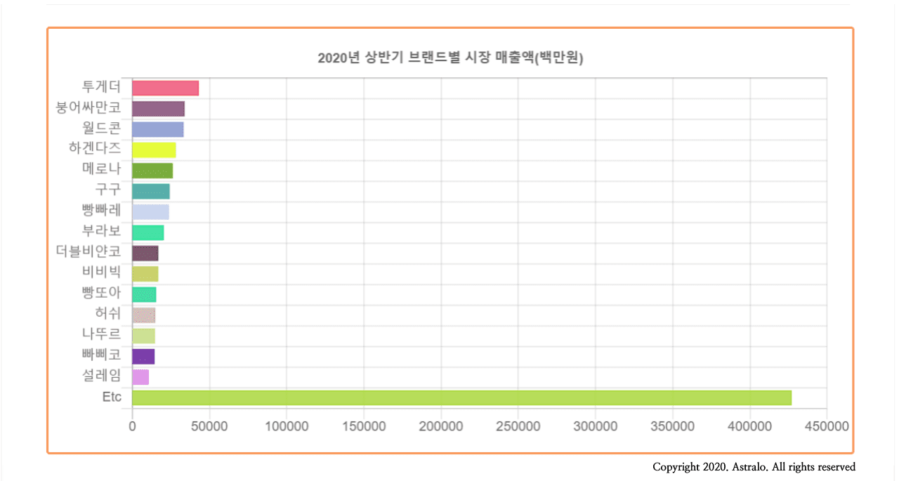 ☞ 2021년 1월 1일 기준, 아직 2020년 빙과류 하반기 매출액이 업데이트 되지 않았습니다. 추후 해당 데이터가 제공될 시, 다시 업데이트 됩니다.