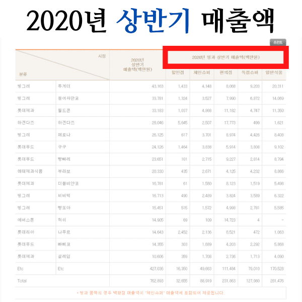 3. 2020년 국내 빙과류 매출액 순위 업데이트 (2021년 기준)