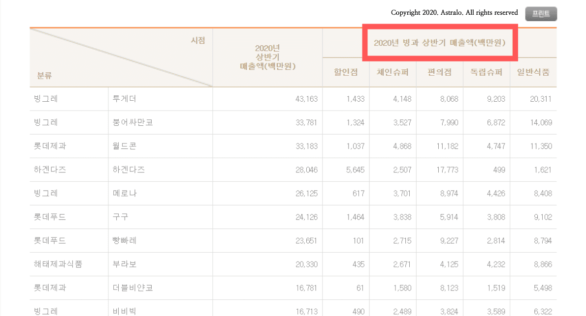 2. 국내 빙과류 시장 매출액 순위 확인하는 방법!