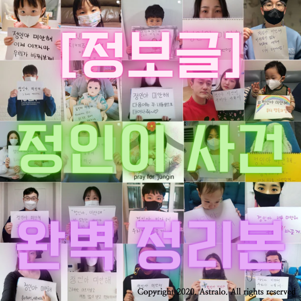 ☞ 저는 이번 정인이 사건을 계기로, '아동학대'에 대한 사회적 인식이 완전히 바뀌어야 한다고 생각합니다. 아동학대는 가정의 문제가 아닙니다. 우리 사회 모두의 문제입니다. 이 글이 아동학대 사건에 대한 마지막 정리이기를 진심으로 바라며 글을 마칩니다. 끝.