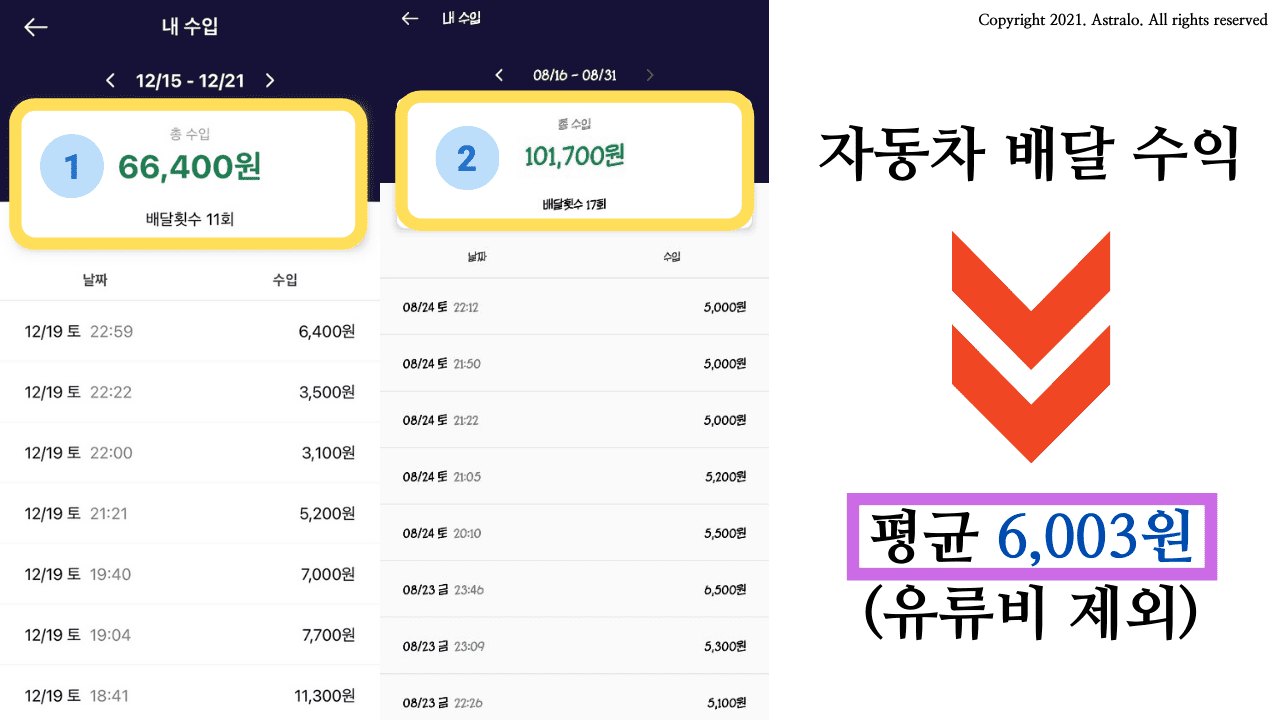 ☞ 자동차 배달 평균수익 = 약 6,003원