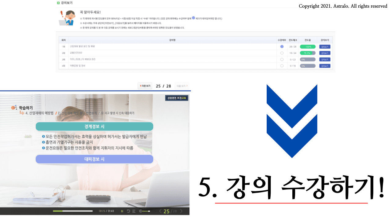 ▲ 강의를 모두 수강하여 주세요. 강의는 총 4강이며, 약 30분 정도의 시간이 소요됩니다.