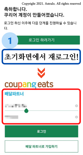 ☞ 쿠팡이츠 배달파트너 가입 완료!