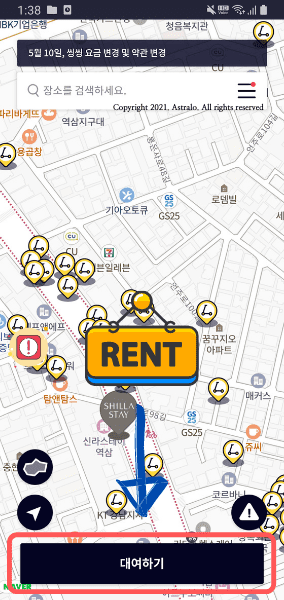 ▲ 우선, 씽씽이를 이용하기 위해서는 씽씽이를 찾아야겠지요! GPS 위치서비스를 이용하여 여러분의 주변에 있는 기기를 찾아주세요!