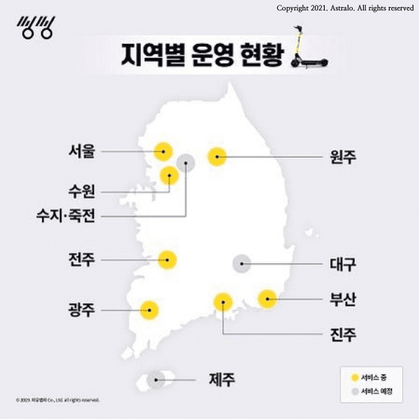 ≫ 최신 지역 업데이트는 어플을 통해 공지됩니다. 아래의 씽씽 킥보드 [이용방법] 항목을 참고하여 주세요.