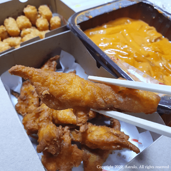 ▲ 로제떡볶이의 꾸덕함이 조금은 느끼해질 때쯤, 바삭한 감자폭탄도 한 입 베어 물어보세요! 궁합이 좋습니다.