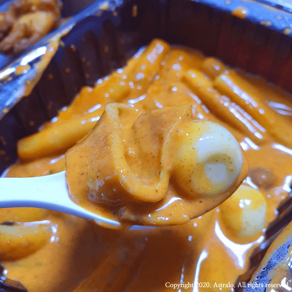 ▲ 우선, 메인 메뉴인 로제떡볶이는 달달하면서도 매콤한 국물 떡볶이의 정석이었습니다. 로제떡볶이 특유의 꾸덕하면서도 부드러운 매력이 참 끌리는 맛이더라고요. 어묵과 메추리알도 궁합이 좋았습니다.