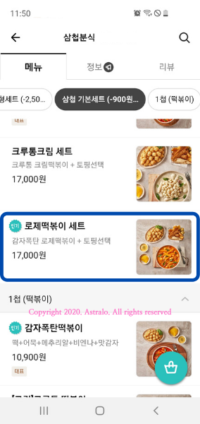▲ 저희가 주문한 [로제떡볶이 세트]는 배민 기준으로 17,000원에 판매되고 있습니다. 최근 국물 떡볶이가 비싼 몸이 되었기 때문에, 이 정도 가격이면 합리적인 수준으로 보입니다.