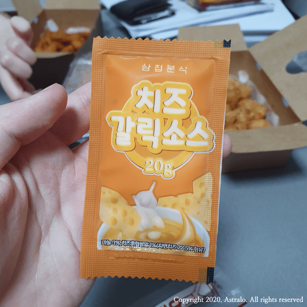 ▲ 기타 구성으로는 닭발튀김 및 감자폭탄과 함께 즐길 수 있는 소스가 눈에 띕니다. 또, 떡볶이 프랜차이즈 치고는 독특하게 단무지가 함께 왔습니다.