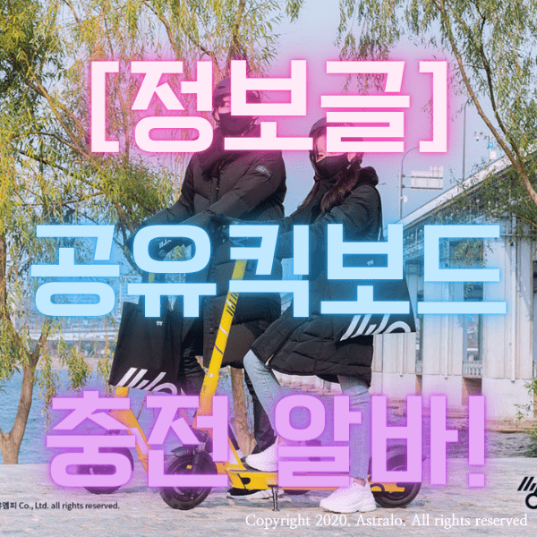 지금까지, 오늘은 '씽씽이(전동 공유킥보드) 배터리 충전 알바'에 대해서 한 번 알아보았습니다. 간단한 부업을 찾고 계시는 분께 한 번쯤은 추천드리고 싶은 알바입니다.
