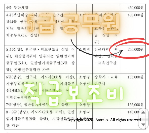 2. 직급보조비: 5급 공무원 기준 250,000만원